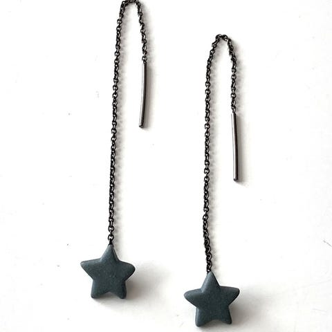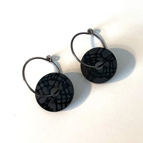 Oxyderede creoler m/bladformede vedhæng fra Ditte Fischer.