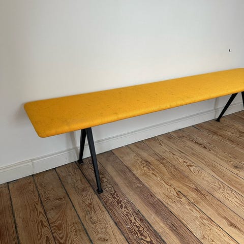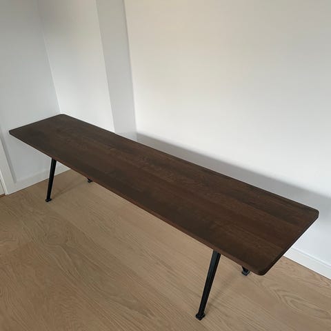 Brugt Pyramid bænk fra Hay i god stand med mindre brugsspor. Bænken er designet af Wim Rietveld med sæde i egetræ i mat lak. Sort pulverlakeret stål stel. L: 140 x B: 40 x H: 46 cm Nypris. Ca. 6500kr.