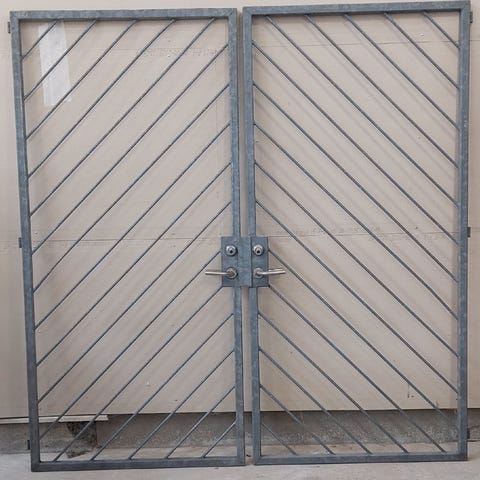 Dobbeltdør stålgitterport med el-lås og kodetastatur