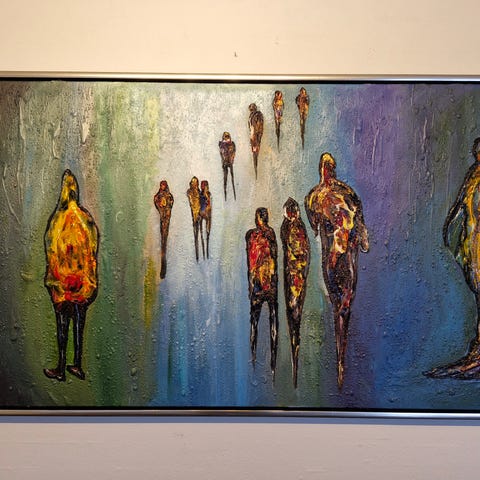 Akrylmaleri, Leif Rabøl, 100x80cm. Fiks færdig, privat, figurer..