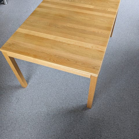 Haslev sofabord i lys bøg med firkantet bordplade og fire ben. Bordet er håndlavet i Danmark og har et enkelt design, der passer til forskellige indretninger. Materialet er massivt træ, som giver stabilitet og holdbarhed.