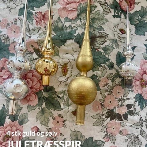 Gammel Juletræs top i rød og sølv. 28 cm. Inklusiv æske