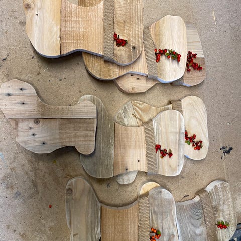 2 stk af filt med broderede ræde snefnug - 50 cm