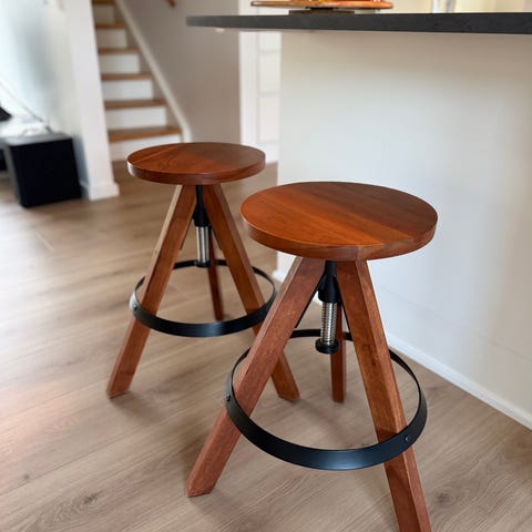 Note: A matching set of 2 CB2 solid wood swivel bar stools is also available for DKK 500.