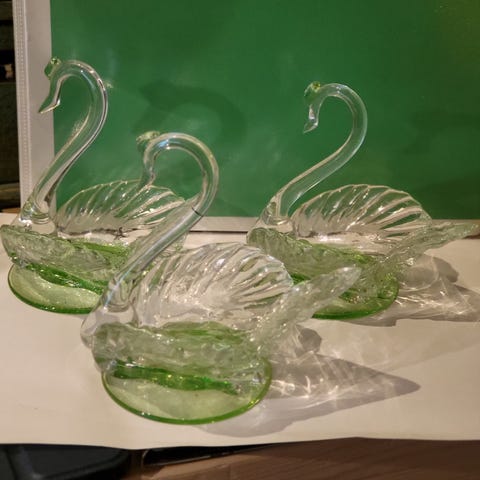 Hvid keramisk svane figur skål med detaljerede fjer og hulrum til opbevaring eller dekoration. Skålen er formet som en svane med en buet hals og er egnet til brug som dekorativ genstand eller til små opbevaringsformål.