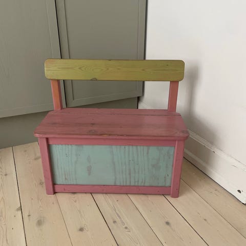 Bænken har et stort opbevaringsrum, egnet til opbevaring af legetøj eller andre genstande.