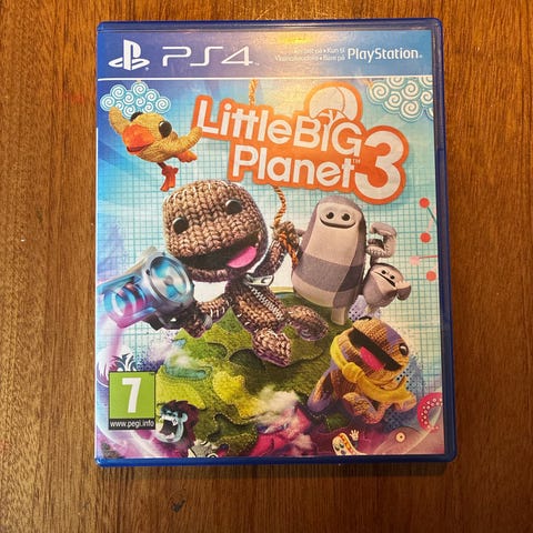 Sony LittleBigPlanet Playstation 3 spil. Inkluderer spillets cover og disk med forskellige farverige illustrationer. Spillet er egnet til Playstation 3 konsollen og henvender sig til brugere fra 7 år og op.