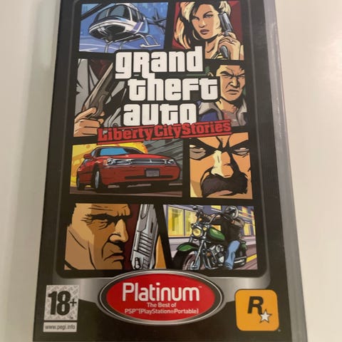 Rockstar Games Grand Theft Auto Liberty City Stories PSP spil. Spillet er til PSP konsol og har en aldersgrænse på 18 år. Indeholder spilskive og originalt cover med illustrationer relateret til spillet.