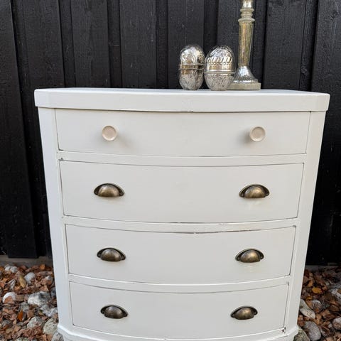Lækker teaktræskommode malet med kalkmaling udvendigt i farvet soft sand, vokset og med patina.