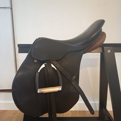 Lækker Stübben springsadel, som er blevet brugt til stor 3er og stor 2er pony. Sadlen er sort