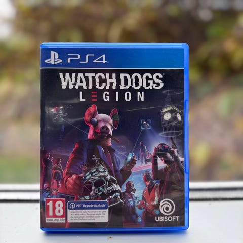 Ubisoft Watch Dogs Legion Playstation 4 spil. Spillet er en del af Watch Dogs serien og er beregnet til Playstation 4 konsollen. Det er et action-eventyrspil med en aldersgrænse på 18 år og indeholder en fysisk disk i original emballage.