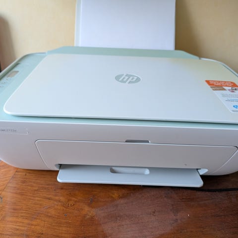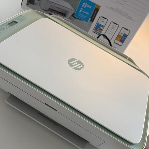 HP DeskJet 2622 printer i hvid farve. En multifunktionel printer med scanning og kopifunktion. Velegnet til hjemmebrug eller mindre kontormiljøer. Kompatibel med trådløs tilslutning for nem udskrivning fra forskellige enheder.