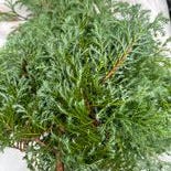 Vi har blød ene, nobilis, nordmannsgran, cryptomeria, fyrtoppe, " sulten fyr ", cypres, thuja, lærkegrene med kogler, kristtorn, mos mv.