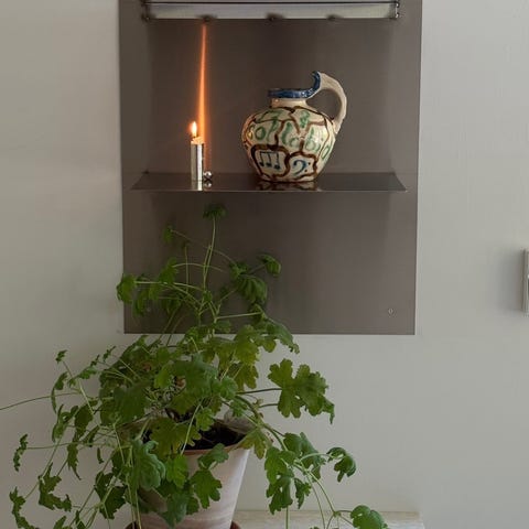 Speciallavet stålhylde efter egne må. Lavet af smed til et køkken på Nørrebro. Slidstærk, men samtidig utroligt let i sit design. To hylder, som begge kan være stor vægt. Hylden er lige vurderet til en værdi af 9.000 dkk.