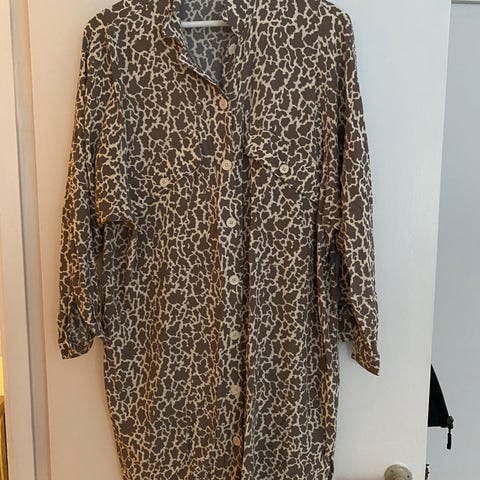 Kjolen er i fin stand. Den har lommer i siderne og måler 92 cm fra skulder og ned.