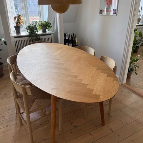 Bordplade i olieret egefiner og ben i olieret massiv eg