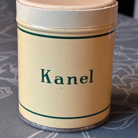 Retro kanel krydderi dåse med låg
