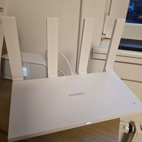 Huawei AX3 Pro. Wi-Fi-bånd: Dual-band (2,4 GHz / 5 GHz), Bedste Wi-Fi standard: Wi-Fi 6 (802.11ax), WLAN dataoverførselshastighed (maks): 2976 Mbit/s. Ethernet LAN-grænsefladetype: Gigabit Ethernet, Ethernet LAN-datahastigheder: 10,100,1000 Mbit/s, Kabelteknologi: 10/100/1000Base-T(X). Generering af mobilnetværk: 4G. Produkttype: Bordplade router, Produktfarve: Hvid. Antenne type: Ekstern