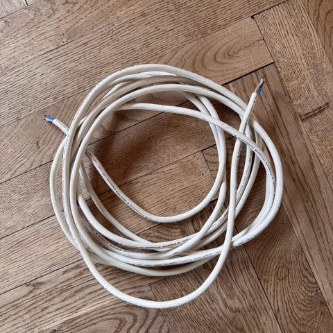 o Black Rhodium biwire kabel uden stik. Ud fra teksten på kablet vil jeg mene at det er et Black Rhodium. Der ser ud til at stå S130X2 på hvilket refererer til Black Rhodium her: https://www.hifiengine.com/manual_library/black-rhodium/high-quality-audio-and-home-cinema-cables.shtml - længden er 365 cm