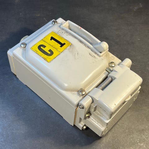 Pæn 380V kraft stikkontakt / ældre grå LK model med klap og til 5 flade ben
