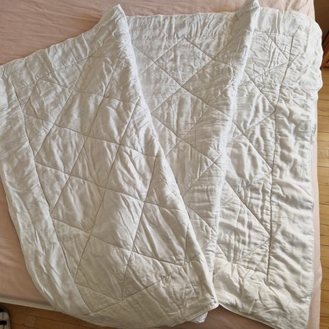 Helårs silkedyne fra Kronborg (JYSK), model NORDKAPP. Fyldt med mulberry-silke og kan maskinvaskes. Størrelse 135x200 cm. Brugervenlig og temperaturregulerende dyne, som holder dig behageligt varm uden at blive for tung.