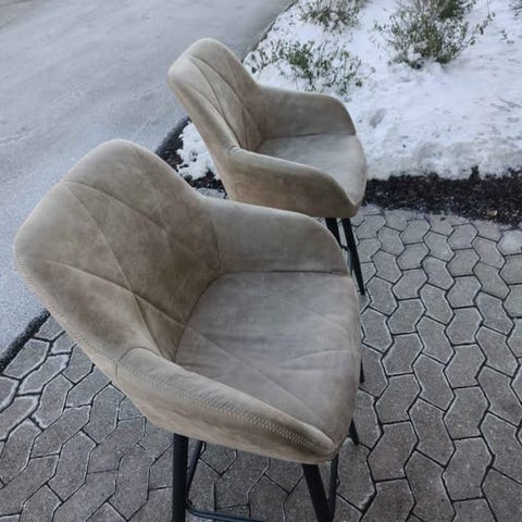 Et tidløst og alsidigt par, der passer perfekt til et bord i diskhøjde eller barhøjde - såsom det matchende CB2 galvaniserede metal- og mangotræsbord.