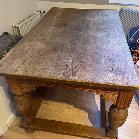 Antik spisebord, Egetræ, Flot rustik spise bord.