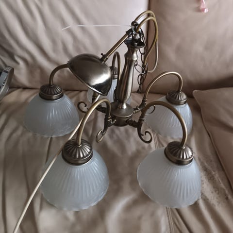 SMUK ANTIK ART DECO LYSEKRONE I GLAS & MESSING