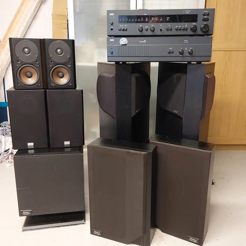 2-vejs stereo sæt med Peerless enheder. Ældre dato, spiller fint, måler 28x28x90 (koniske og lidt smallere for oven).