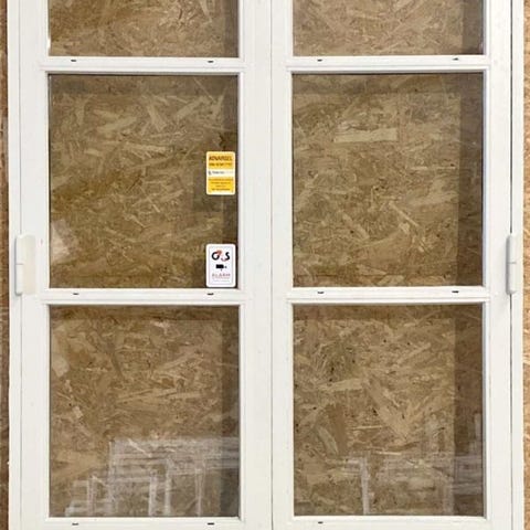 Brugt Storke Dobbelt Terrassedør, træ/træ, 2 lag glas, hængt på begge sider, udadgående, hårdttræsbundstykke, mål kan ses på billedet Varenummer: 1335