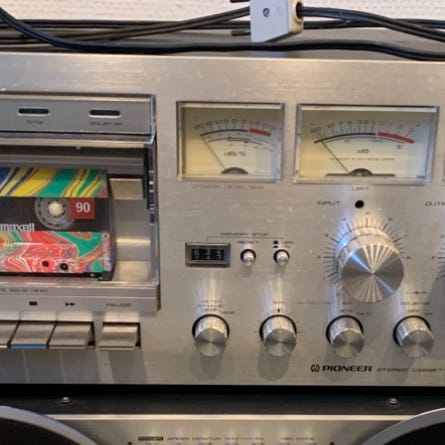 Rigtig fin og meget speciel maskine. Der er plads til 7 bånd der kan skiftes mellem automatisk. Den har indbygget receiver. Fungerer som den skal.