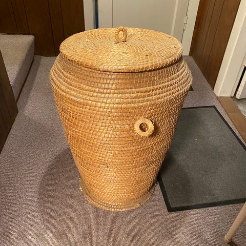 Vasketøjskurv/Skammel fra Agape,designet af Benedini Associati Italien i fineret Plywood/mørk eg.