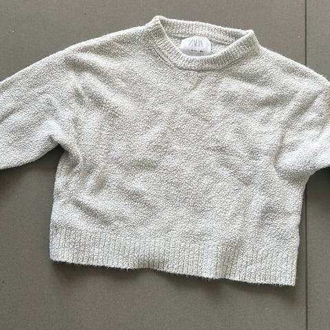 Zara pige bluse i størrelse 152. Blusen er beige og har en tekstureret overflade med dekorative detaljer. Materialet fremstår blødt og egnet til børns tøj.