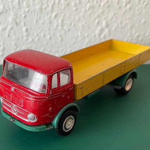 Sælger denne Tekno Mercedes lastbil. Afslag i lakken som billedet viser. Kører en smule skævt på baghjulet. Byd gerne. Køber betaler fragt, eller afhentning i køge. Kan også afhentes I søborg efter aftale