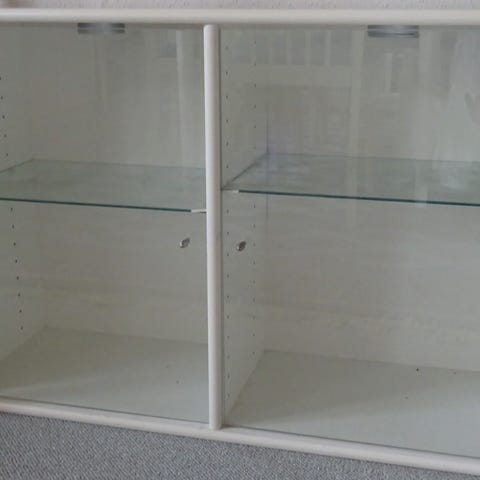 Pænt lille Mistral hængeskab med glaslåger og glashylder.