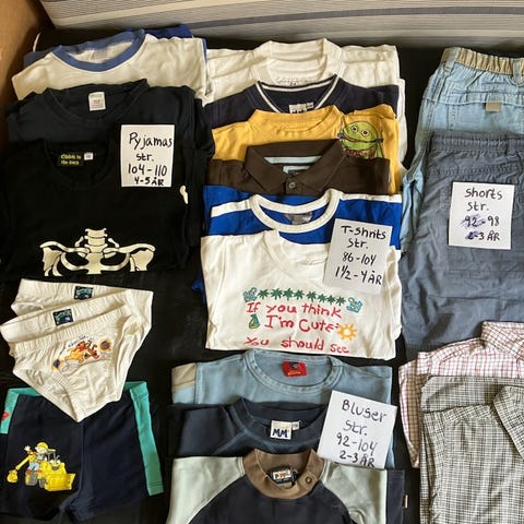 Bodyer, t-shirts, trøjer, bukser, shorts mm. sælges for 10kr stykket. Skriv for mere info.