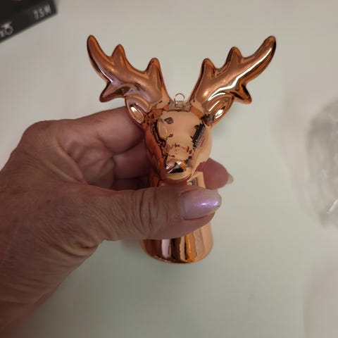 Dette er håndhamret kobberhjerteornamenter fra Windsor Premium, 4 stk, H:12 cm, B:13cm samt 2 kobber rensdyr i 2 str. ( farven er lys kobber men det er der ikke som valg under farver 😅) helt nye/ aldrig brugt og stadig mærker på, sælges samlet