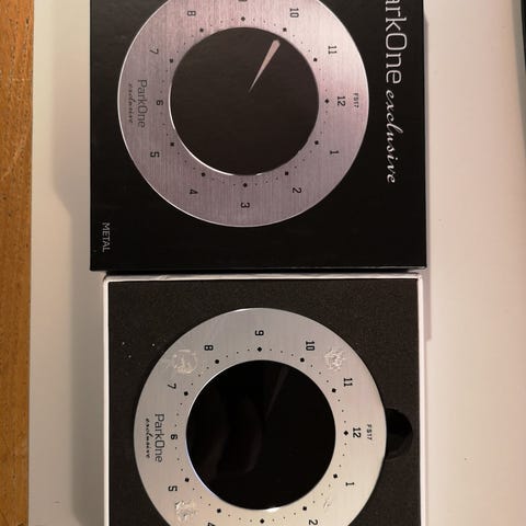 Sælger en samling af elektroniske parkeringsskiver i forskellige modeller.