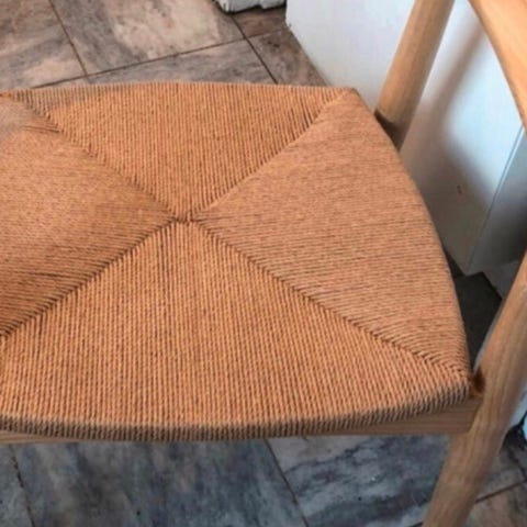 12 teak træ stole med flettet sæde i perfekt stand. Prisen er pr. stk.