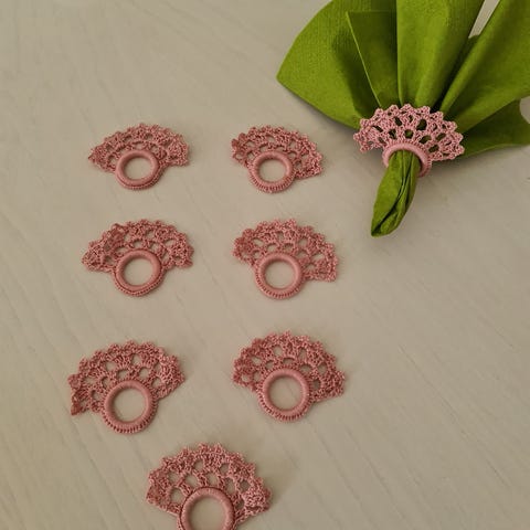 Servietringe 6 stk.- Hæklede + Bordskåner - Ubrugt, Farve: Lyserød