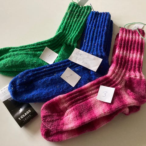 Lune hjemmestrikkede sokker strikket i god strømpegarn str.38/39