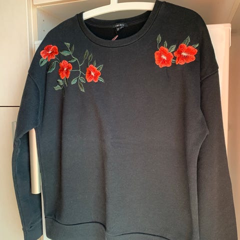 Sort jeans med broderi
