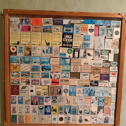 Fin samling af tændstikæsker indsamlet under roadtrip i USA sommeren 1954.