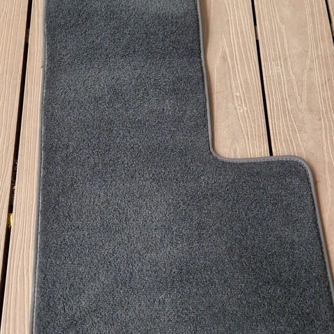 Sæt med tre sorte bilgulvtæpper lavet af stofmateriale. Tæpperne er designet til at passe forskellige sektioner af bilens gulv, herunder forsæder og bagsædeområde. Materialet er blødt og giver grundlæggende beskyttelse mod snavs og slid. Farven er sort, hvilket passer til de fleste bilinteriører.