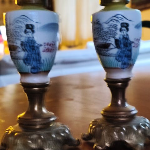 Cylinder messing stager og bakke antik/retro