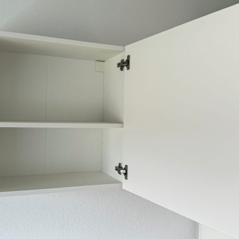 Hvidt lille skab. Fødderne har bare været klistret og 2 er faldet af, de ligger inde i skabet og kan bare skrues fast.