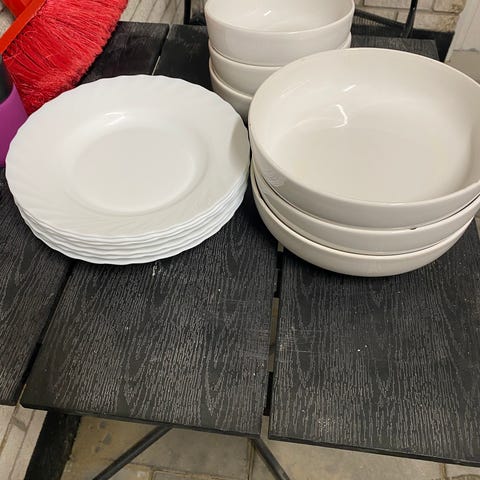 6 store tallerkener og 6 dybe skål til dessert eller suppe