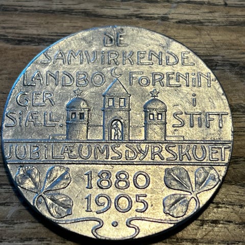 Token med skrift. L. Nielsen 50 øre Bazar St Strand Stræde 5. Kjøbenhavn 1888
