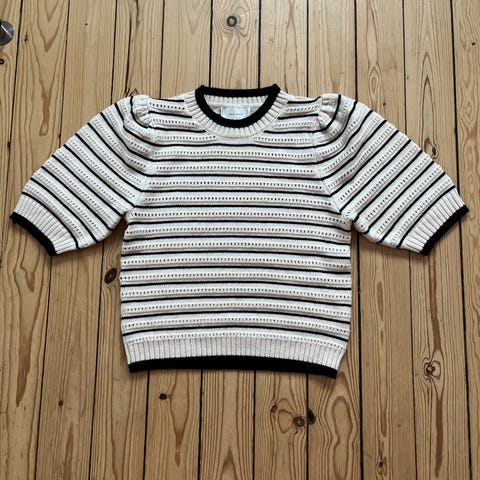Neo Noir Sweater i farven hvid, størrelse S. Trøjen har en rund halsudskæring og er lavet af et blødt, ribstrikket materiale. Designet til kvinder.