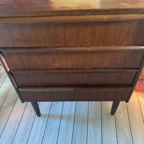 Fin lille teak komode har nogle få skræmmer, men ellers i rigtig god stand